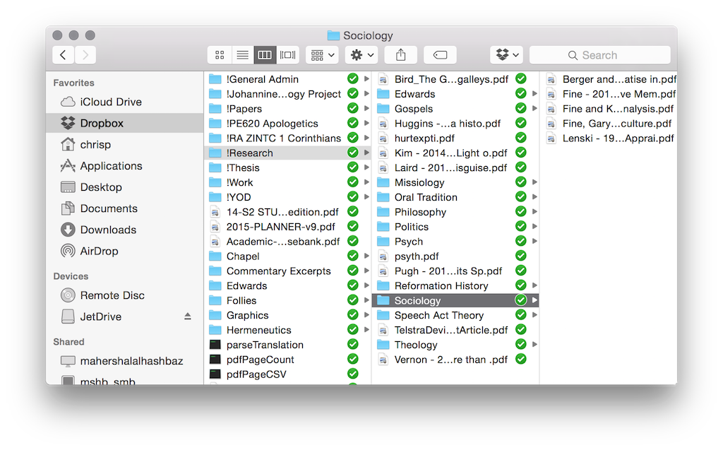 Zotero functions as the heart of the system and is used to make access to your research library quick and easy. But it is not the only part of the system and requires other aspects to function effectively. As I go into in one of my other posts the Zotero cloud storage capacity leaves a bit to be desired, so I store all of my PDFs in Dropbox. Zotero makes it easy to rename all the files easily and keep soft-links to the database.