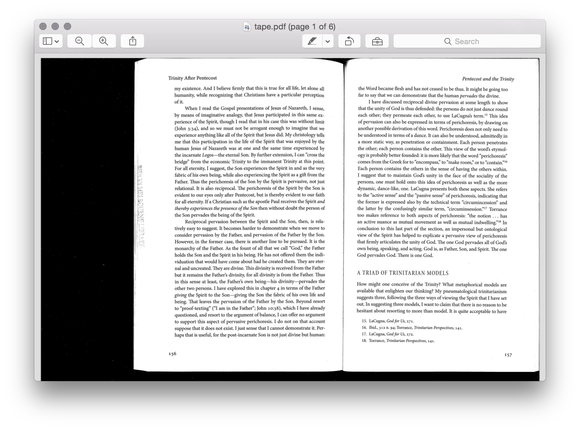 y-u-so-hard-to-readNow, if working with digital media is your thing, I am almost certain that you would have found whether your office, library or other choice of research institution has the ability to scan documents. Most photocopiers come with this functionality these days, and the majority I have used in the past four years have supported scanning straight to PDF on a USB stick. All well and good you might say, there is my digital media right there, job done. Well not quite. You see while natively digital media generally comes formatted for the screen, in either portrait or landscape, printed media comes in a wide variety of formats. Academic works in Psychology and Theology come in a range from squiffy-near-A5, through to square-wannabe-A3 books (Hermeneia commentaries I’m looking at you here…). However, your digital device likely only comes in one of two formats, both approximating a rectangle in either 16:10 (Android, and most PC monitors), or 4:3 (iPads and older monitors). How do you get your freshly scanned media to display nicely on your screen, and in such a way that you don’t spend extra time scrolling or zooming, and you don’t go blind from eyestrain. Imagine reading this on the screen: