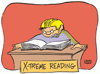 cartoon_reading2Nevertheless the reading process can be hard, books can be too long, too dry, and plain old boring. What do we do with that sort of challenge, do we simply slog through a book because we started it? Actually I don’t think that this is a productive or healthy way of going. While I think we need to read more whole books, I am happy to acknowledge that not all books need to be read from cover to cover. Some are best used as reference works, even if they are not designed as such. Others are helpful to skim read through, for a gestalt picture of the argument, while extracting certain portions. Others are indeed best read cover to cover and pored over as you go. So how do we differentiate between the different types of reading? Tim Challies distills the reading method into seven categories: Studying, Pillaging, Devotional, Skimming, Stretch, Rerun, and Failed. [ref]http://www.challies.com/articles/7-different-ways-to-read-a-book[/ref] I think his broad categories are useful in thinking about our reading process and his blog post is worth a read. But here I want to focus on just three: Studying, Stretch and Failed.