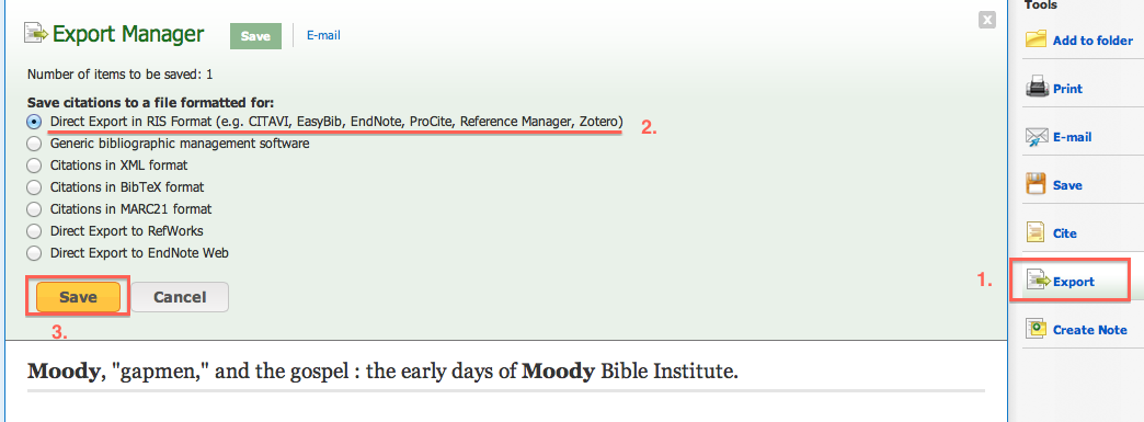 1. Add reference into Zotero from ATLA (via RIS export), the Ridley Library or Amazon.com (via browser plugins), or enter by hand.